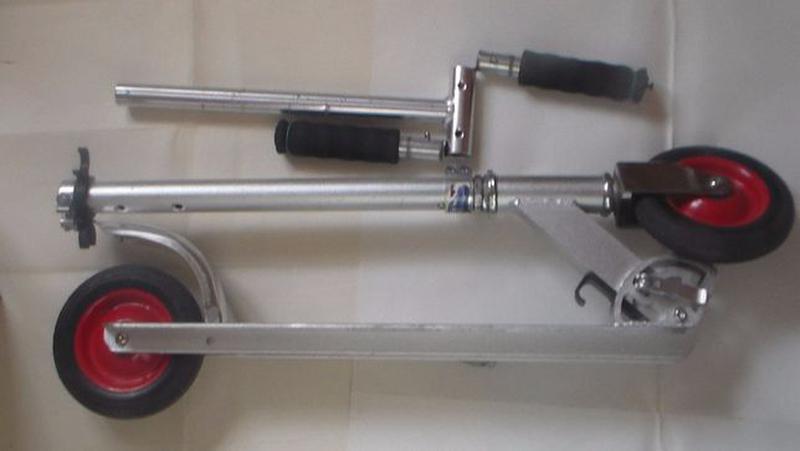 Великий самокат з алюмінієвою рамою добре складається можна і дорослому до 80 кг самовивіз біля метро харківська можна підшаманити і зробити електро Оголошення від: Приватної особи. Стан: Б/у.