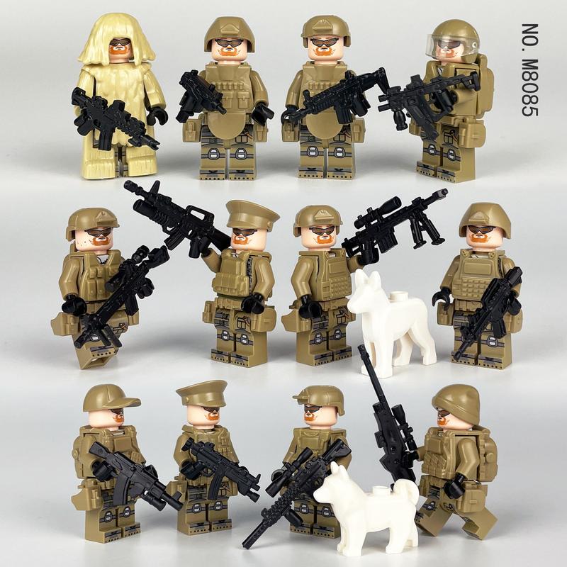 Конструктор фигурки человечки военные спецназовцы солдаты с собаками в пустынном камуфляже...