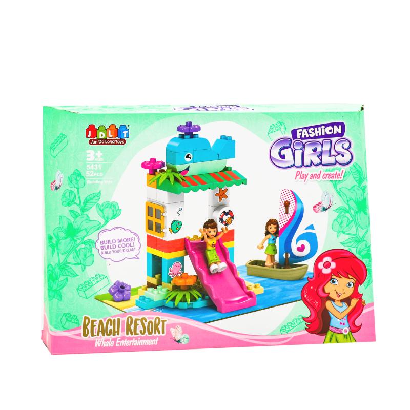 Конструктор JDLT "Аквапарк". 52 деталі, фігурки, лодка в наборі. Вік - від 3 років. Матеріал - пластик. Паковання — коробка. Розмір - 40х7,5х28 см.