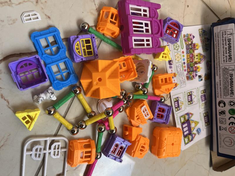 Конструктор с магнитными креплениями-шариками «Усадьба». Состоит из 72-х элементов. Коробка, инструкция.