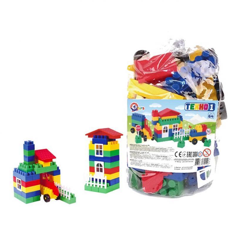 Конструктор "Техно 1". Великі елементи, 64 деталі. Матеріал - пластик. Паковання — пакет. Розмір - 15х16х30 см.