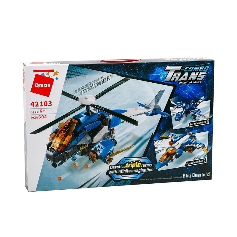 Конструктор Qman "Combo Trans", 3в1. 604 деталі. Матеріал - пластик. Упаковка - коробка. Розмір - 52х6,5х34 см. Вік - від 6 років.