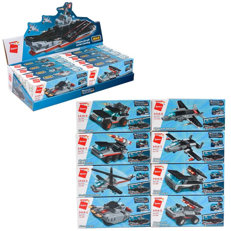 Конструктор Qman "Trans-collector" 8 видів, 74-101 деталь. Матеріал - пластик. Упаковка - дисплей. Розмір - 43х19,5х10 см.