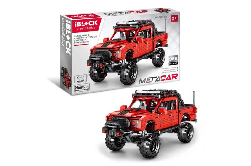 Конструктор iblock pl-921-331, 989 деталей, мегаcar, р-р машини 30 * 14 * 17 см, в коробці...