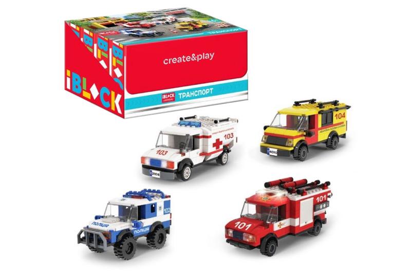 Конструктор pl-921-437. iblock транспорт, 4 вида у дісплей боксі 159-187дет, інструкція на...