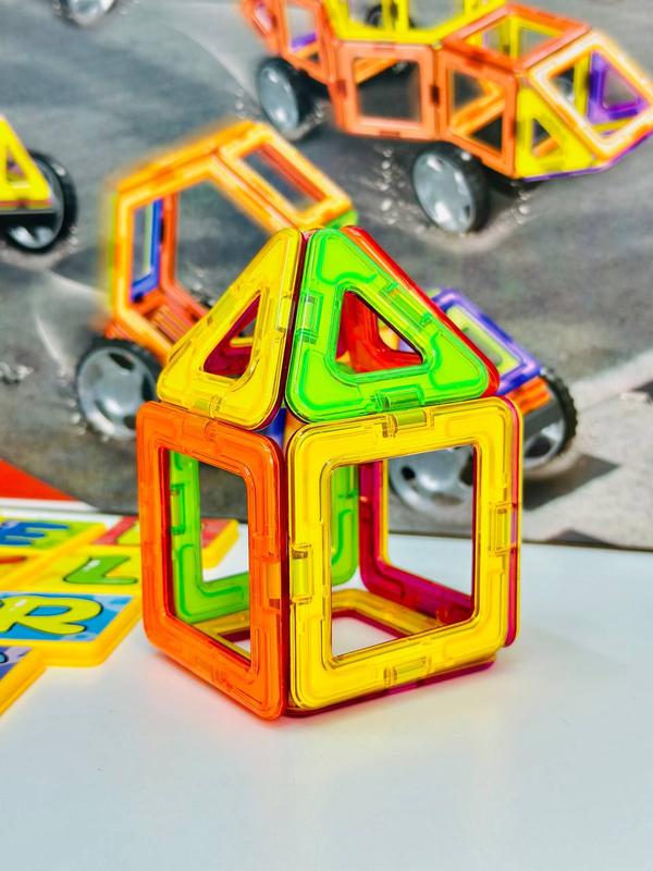 Особливість такого конструктора полягає в тому, що деталі кріпляться один з одним за допомогою магнітів🧲 які поміщені в пластиковий корпус🚗 Обертаючись, в залежності від необхідного полюса, магнітні деталі завжди притягуються один до одного, що дозволяє створювати багато різноманітних конструкцій🏠 Даний набір складається з 58-ти деталей, англійської абетки🔠 наліпок🔖та колес для моделювання авто🚙