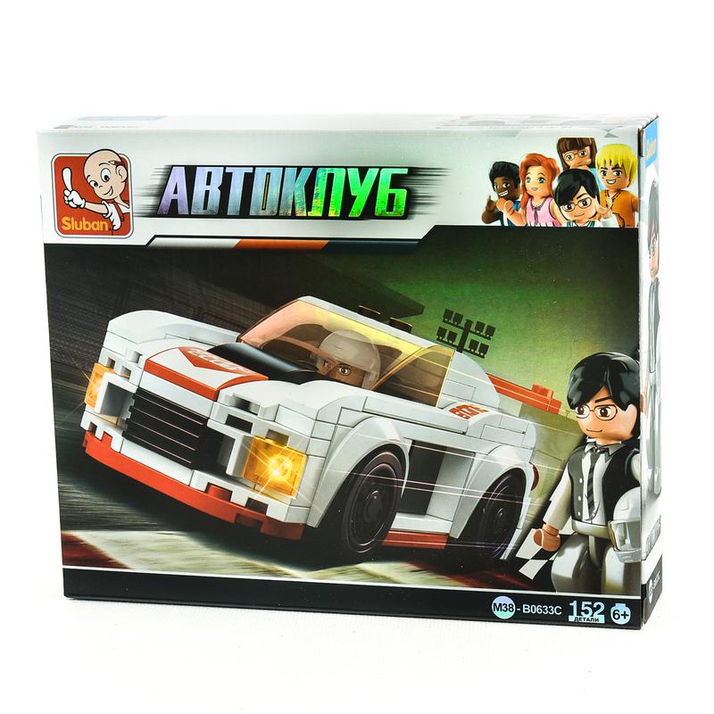 Конструктор SLUBAN Перегони. 152 деталі, транспорт та фігура водія. Вік - від 6 років. Матеріал - пластик. Паковання — коробка. Розмір - 24х4,5х19 см.