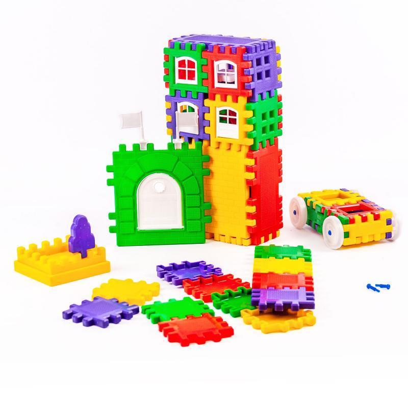 Конструктор "Блочний". 113 деталей, великі кольорові елементи. Вік - від 3 років. Матеріал - пластик. Упаковка - пакет. Розмір - 18х10х35 см.