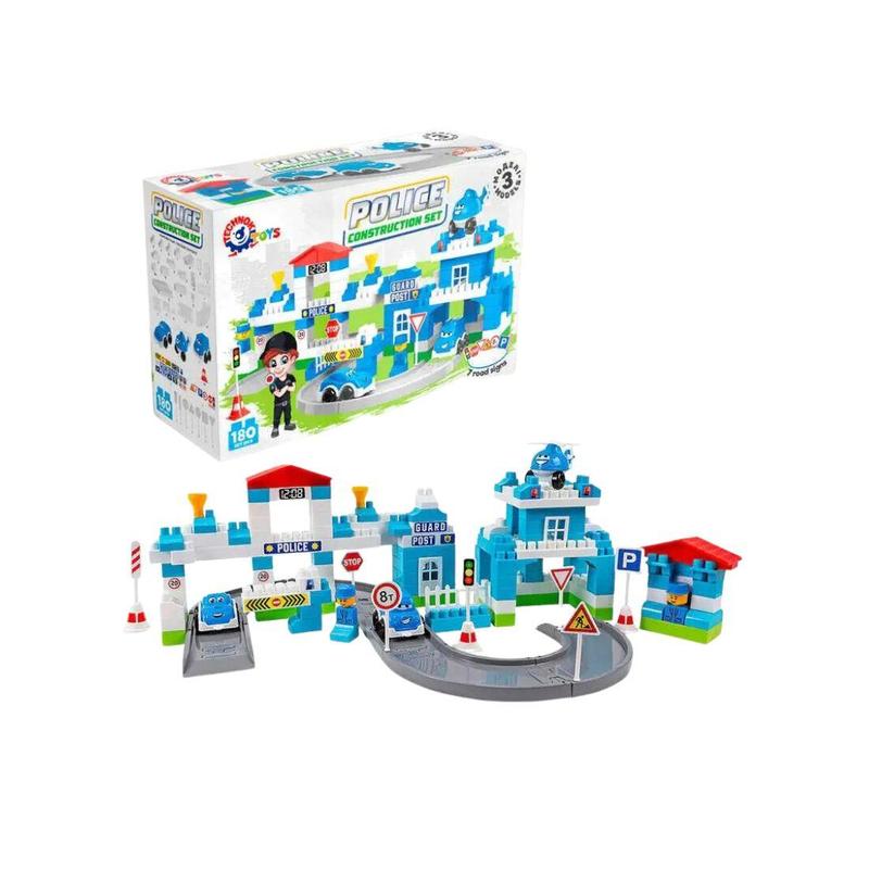 Це неймовірний набір, який дає змогу створити власний поліцейський відділ з усіма необхідними деталями та аксесуарами. Особливості: - в наборі 180 деталей;- серед деталей можна знайти 15 різновидів архітектурно-будівельних елементів, 5 елементів дороги, 7 дорожніх знаків, 3 двоколірні підставки, 2 фігурки поліцейських у уніформах і 2 великі 10х10 пластини;- до конструктора додається патрульна машина, мінівен і вертоліт;- додається кольорова інструкція з докладними кроками;- конструктор сприяє розвитку моторних навичок, просторового та творчого мислення; деталі конструктора повністю сумісні з іншими конструкторами ТехноК, а саме серії "Техно" та "Преміум серії".