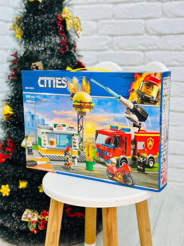 Тематика -Пожежа у закусочній; Серія - Cities; Кількість деталей - 345; тип кріплення - пазовий; Розмір деталей - стандарт; Мінімальний вік - 6 років; Герої в наборі - пожежники. Конструктор у повній мірі розгортає небезпечний і дуже цікавий рятувальний сюжет - пожежа у закусочній! Оперативний загін пожежників вчасно зреагував на виклик і швидко дістався до відкритого ларьку з продуктами швидкого харчування. Власник в жаху від ситуації, що склалася, але у рятувальника усе по контролем. З набором Ви зможете зібрати: - магазин; - вивіску; - пожежну машину; - мотоцикл.