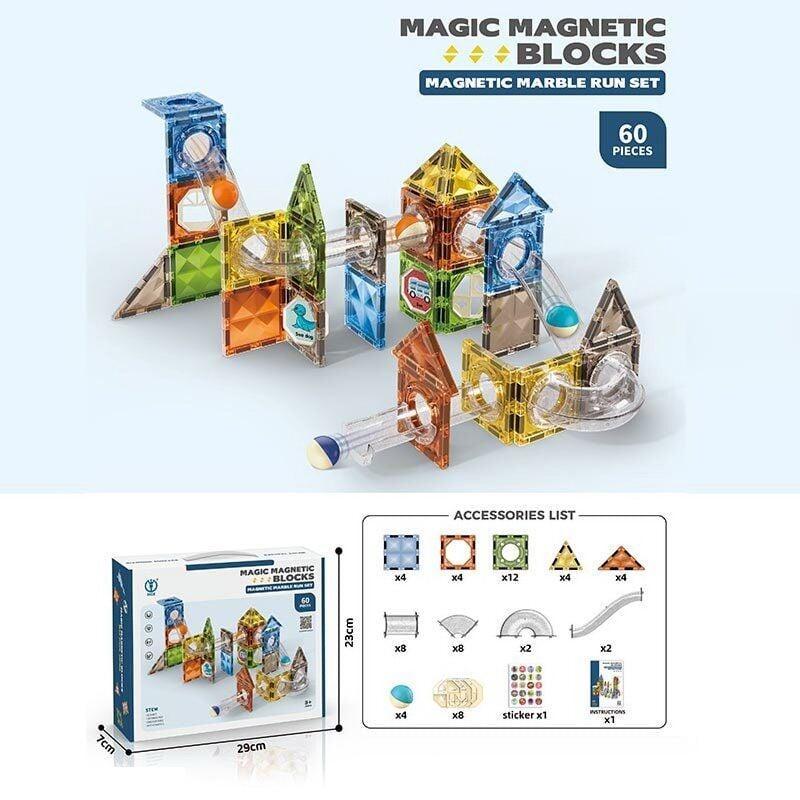 Конструктор магнітний, 60 деталей, тунелі, кульки, в коробці