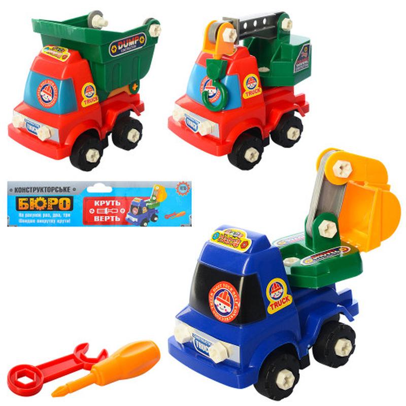 Конструктор: строительная техника самосвал,экскаватор,кран 15х13см/шуруп-гайка в пакете