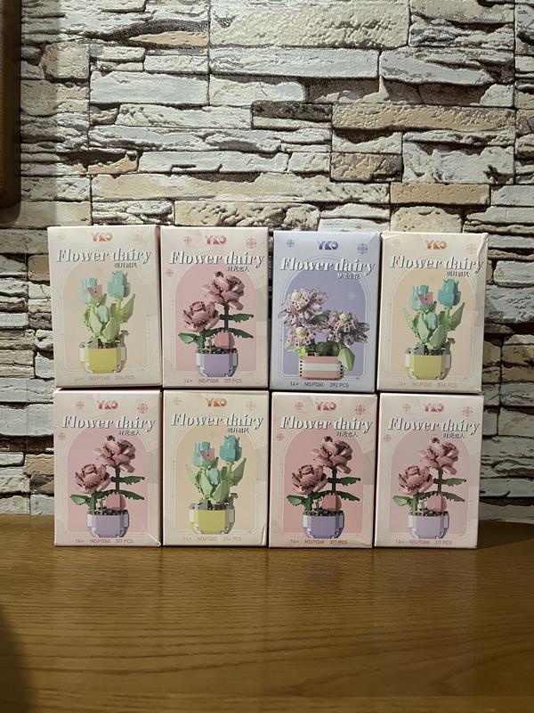 Конструктор цветочки 🌸🌷🌺идеален для подарок. Троянди в горщику : 317PCS Тюльпани в горщику : 334PCS Маргаритки в горщику:492PCS Размеры фигурки и коробочки на фото.