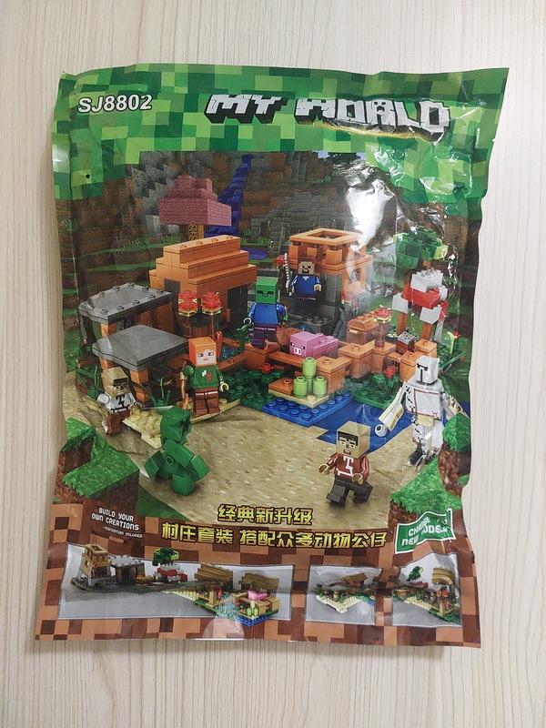 Поставляється в кольоровому пакеті. Складається з 569 деталей та 8 фігурок персонажів. Повністю сумісний з лего. Чудовий та незвичайний подарунок вашій дитині. Це захоплюючий набір Minecraft, що дозволяє гравцям створити справжнє селище з відомої гри Minecraft. Село складається з 6 локацій: оборонна вежа, будинок жителя села, город із загоном, колодязь, ринок біля дерева, кузня. Конструктор призначений для створення різноманітних будівель та споруд у стилі Minecraft, дозволяючи гравцям поринути у світ блоків, будівництва та пригод. У наборі є кілька мініфігур персонажів та істот, які забезпечують різні ігрові сценарії та розвиток фантазії.