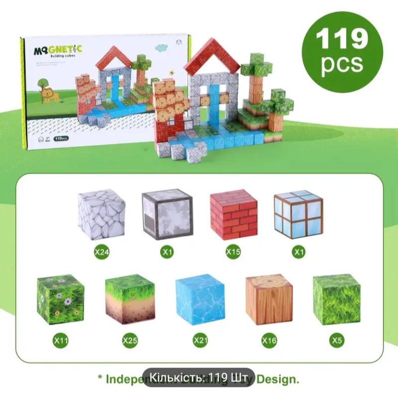 дитячий магнітний конструктор майнкрафт 192 кубіка 1950 грн 119 кубиків 950