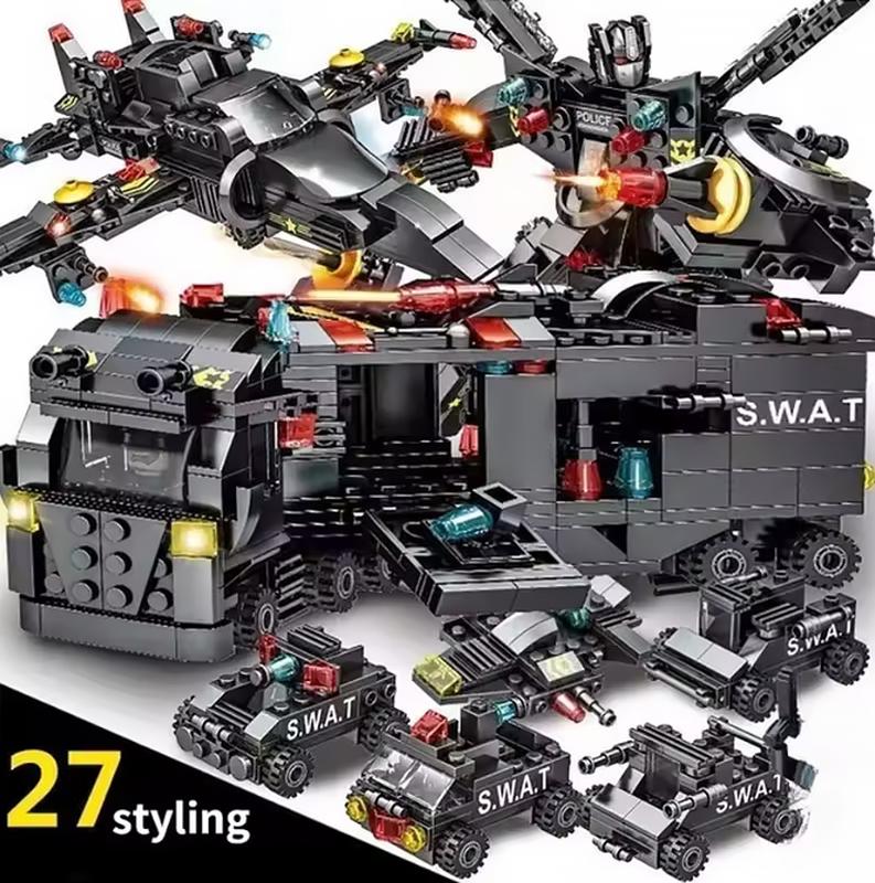 Поставляется в подарочном пакете. Состоит из 505 деталей + инструкция Полностью совместим с лего. Этот набор станет отличным подарком для любого ребенка, интересующегося спецоперациями, техникой и спасательными миссиями.
