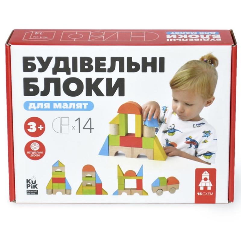 Еко іграшка дерев’яні кубики - перша іграшка малюка. Об’ємні геометричні фігури, вежі, замки, міст і навіть ракета - з цього невеличкого набору кубиків можна зібрати чимало моделей. На упаковці розміщено 15 схем для складання. Іграшки з дерева приємні на дотик, легкі і стійкі до механічних пошкоджень, у разі забруднення - легко миються милом. Великі деталі та сертифіковані німецькі фарби, призначені для виробництва іграшок, роблять гру безпечною навіть для найменших. Гра з кубиками розвиває логічне мислення, координацію, розуміння кольору, форми, а також: - дрібну моторику, контроль над пальцями рук - абстрактне мислення - вміння шукати нестандартні рішення - фантазію, уяву - тренує точність рухів Розміри найменшого кубика 4х4 см Склад: натуральне дерево, сертифіковані лакофарбові матеріали на водній основі, картонна упаковка. Європейський сертифікат якості.
