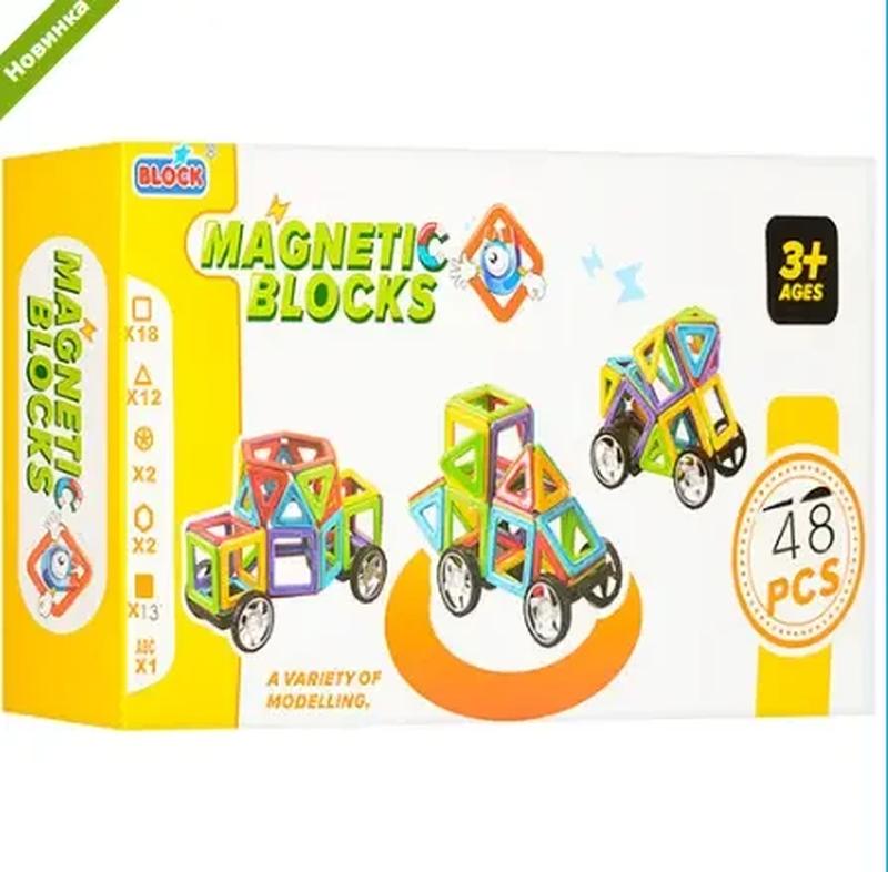 Магнитный 3D конструктор - нестандартный вид конструктора, который способен по максимуму увлечь внимание ребенка! В отличии от пластиковых блоков обычных конструкторов, детали данного набора делятся на разные виды Играть с конструктором интересно детям младшего возраста (от 3-х лет), школьникам и даже родителям. В наборе есть инструкция, которая позволит быстро получить начальный уровень конструкторских способностей. Получить навыки несложно, так как детали достаточно просто приблизить друг к другу. В процессе игры у ребенка будут развиваться воображение и фантазия, ловкость рук и моторика пальцев, умение моделировать и мыслить масштабно. 1. 48 деталей 2. Упаковка:Коробка 3. Возраст:от 3 лет Преимущества конструктора * Магниты соединяют элементы конструктора между собой, поэтому для создания моделей не нужно использовать крепления, завинчивать болтики и т.д.; * Пластиковые элементы не имеют острых углов, поэтому во время игры исключены царапины; * Детали легкие, красочные, удобные для удерживания пальцами, имеют обтекаемые формы.