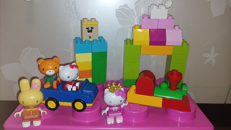 Конструктор Lego Duplo Hello Kitty friends В наборе 26 деталей 4 фигурки и авто У фигурок крутятся руки, ноги, голова.