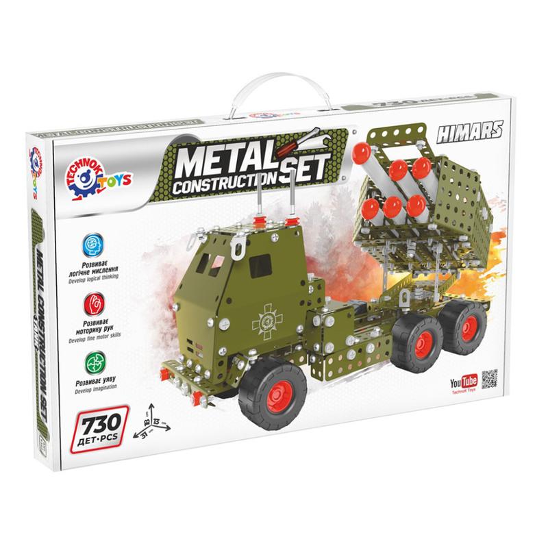 Ласкаво просимо у світ військової техніки з металевим конструктором Himars від ТехноК! Однією з особливостей металевого конструктора Himars є ракетна шахта, яка може підніматися й опускатися, а також повертатися на 360 градусів. Крім того, в конструкторі є знімні ракети, які дозволять дітям відчути себе справжніми військовими стратегами. Металевий конструктор від ТехноК розвиває логічне мислення і моторику рук, а також сприяє розвитку уяви. Діти зможуть відчути себе справжніми інженерами, складаючи складну модель із набору деталей. Детально розроблений конструктор: 730 деталей довжина 31 см висота 18 см. рухомі колеса рухома ракетна шахта 6 знімних ракет Металеві конструктори ТехноК вирізняються високою якістю та різноманітністю деталей, цікавим поєднанням металевих і пластикових запчастин. У кожному наборі є викрутка та ключі для складання моделей. На допомогу юним механікам - кольорова, детальна покрокова інструкція, яку можна завантажити з нашого корпоративного сайту. Складання моделі може стати чудовим способом для батьків зблизитися зі своїми дітьми і провести час разом. Крім того, металевий конструктор Himars може бути чудовим способом вивчення для дітей, які захоплюються історією та військовою технікою. Завдяки своїй деталізації та функціональності, металевий конструктор Himars стане чудовим доповненням до будь-якої колекції військової техніки та забезпечить безліч годин творчого та пізнавального розвитку. А щоб Вам було простіше збирати конструктор ми розробили індивідуальну відеоінструкцію для кожного виробу! Для дітей від 7-ми років і старше. Упаковка - велика подарункова коробка з ручкою.