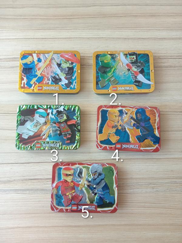 Фігурки Lego Ninjago по 2 шт в металевій коробці В наявності: 1 - 4 шт 2 - 5 шт 3 - Продано 4 - 2 шт 5 - Продано Ціна: по 150 грн