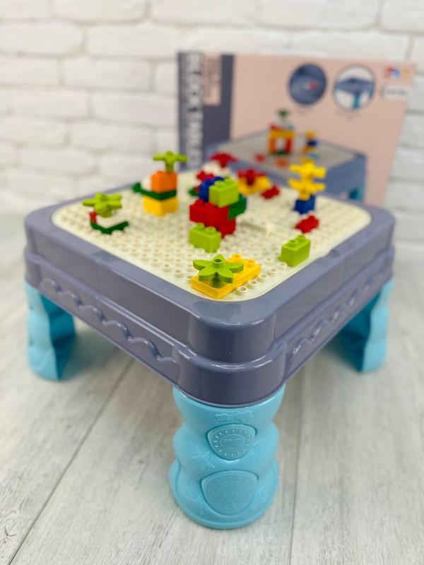 Детский стол с конструктором 3в1 с крышкой для воды песка и кубиков игровой столик констру...