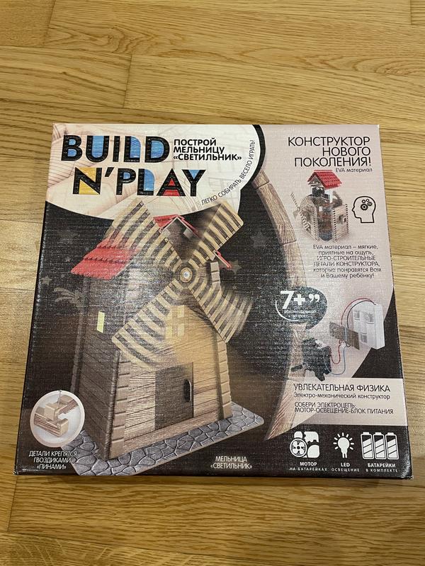 Конструктор Build N’ Play «Мельница Светильник» 📦 Новый, в заводской упаковке. Увлекательный электро-механический конструктор нового поколения для детей от 7 лет. Собери своими руками настоящую мельницу со светодиодной подсветкой и моторчиком – и узнай, как работает физика в действии! ✨ Особенности: • Материал EVA – мягкий, безопасный, приятный на ощупь. • В комплекте: мотор, LED-подсветка, блок питания. • Детали легко соединяются – понятная пошаговая инструкция внутри. • Развивает внимание, логику и инженерное мышление. • Отличный подарок для любознательных детей!