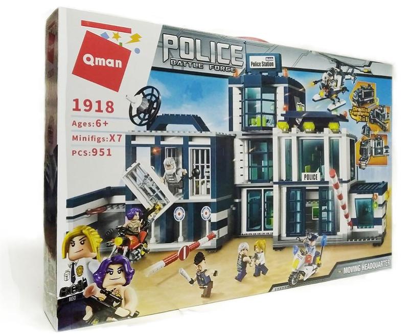 Крутой полицейский конструктор "2в1" - с помощью специального механизма вы можете превратить ваш полицейский участок в огромный грузовик. В комплекте полно фигурок - 7 штук, 951 деталей и большой размер коробки: 9,5x40x60 см.