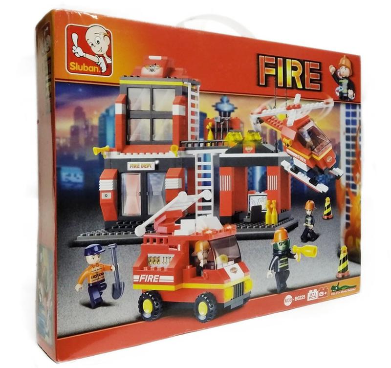 Конструктор Пожарная бригада Sluban M38-B0225 состоит из 371 детали. Собирается спасательная пожарная станция с вертолетом и автомобилем.