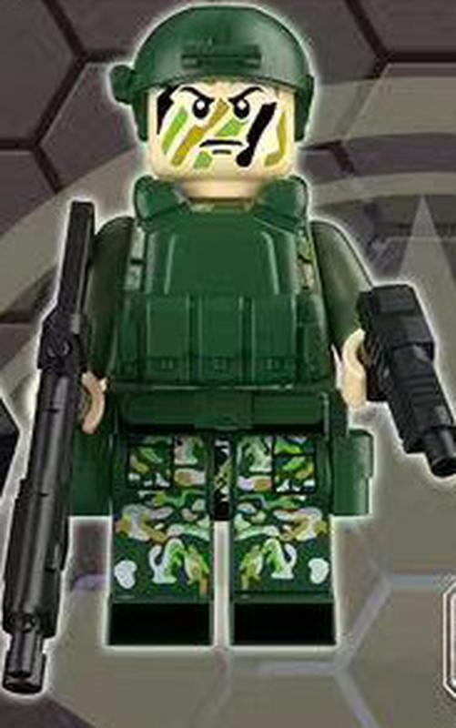 Конструктор фігурка військовий спецназівець у зеленому камуфляжі у касці зі зброєю