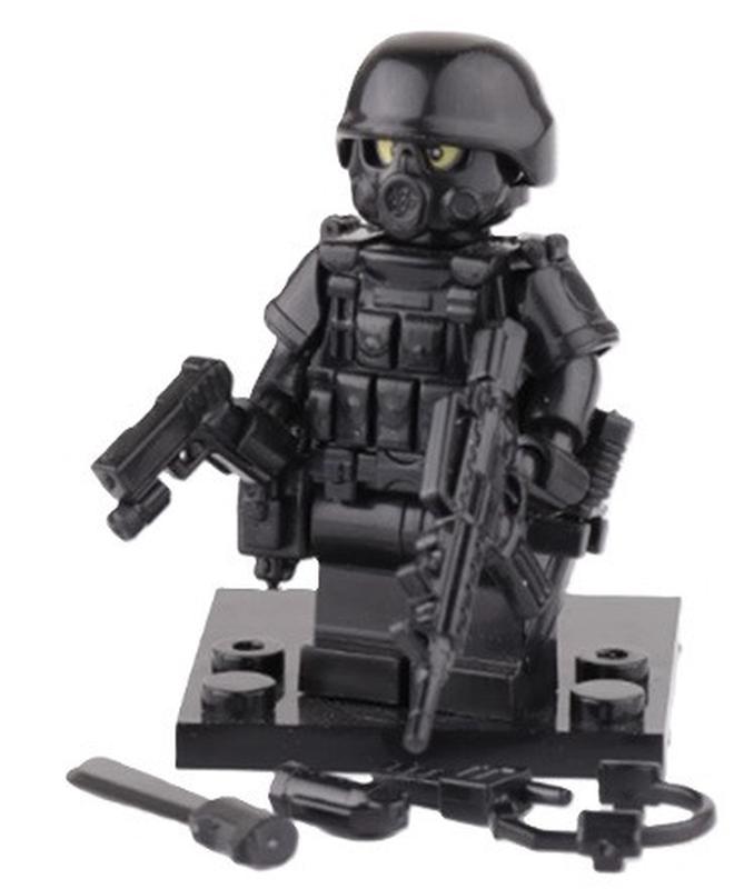Фігурка конструктор військовий спецназівець у протигазі Кожен герой йде в індивідуальному запаяному пакетику, без коробки. Для гри та для колекції. Розвивають дрібну моторику дітей. Виконані з ABS пластику.