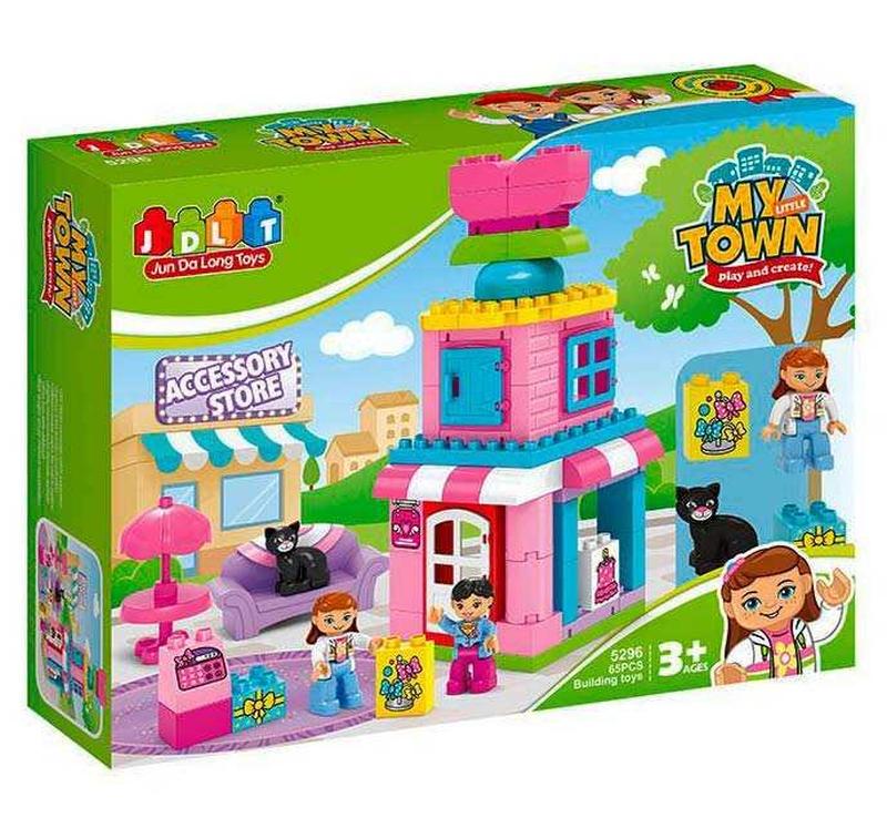 Дитячий конструктор jdlt 5296 (12/2) магазин аксесуарів, 65 деталей, 2 фігурки, в коробці