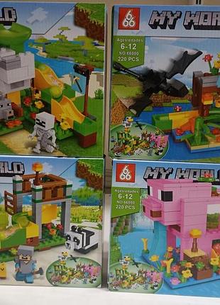 Конструктор 66080, 220 деталей Дитячий конструктор призначений для дітей від 6 років, але обов'язково сподобається і дорослим, які люблять цю захоплюючу гру. Наслідуючи докладну паперову інструкцію, можна зібрати великий шикарний замок з фермою або створити власну локацію в дивовижному світі . Вибирайте одного з персонажів та грайте разом із друзями. Тематичний конструктор дозволить дитині відтворити локації із популярної комп'ютерної гри прямо у себе вдома. Ціна за 1 штуку