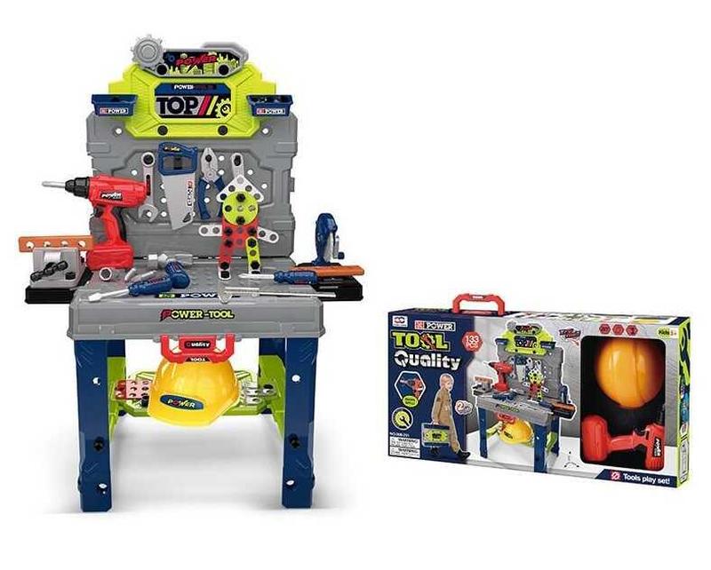 Конструктор для дітей 008-201 з обертовим шуруповертом, верстатом, каскою та інструментами...