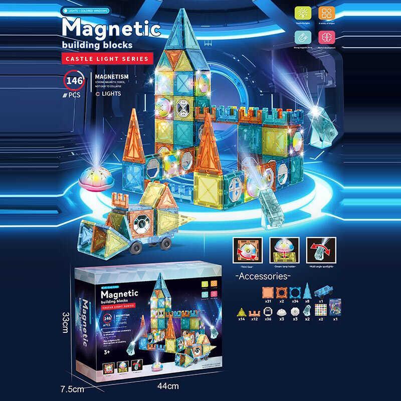 Розвиваючий магнітний конструктор 6699 A Цей комплект з 146 деталей дозволяє створювати різноманітні яскраві конструкції з магнітних елементів із вбудованим світлом. Ідеально підходить для розвитку логіки, фантазії та моторики дітей різного віку. - Магнітні деталі надійно з'єднуються між собою - Світлові ефекти додають захопливості грі - Різноманітність форм для побудови складних конструкцій - Виготовлений з безпечних матеріалів - Зручна упаковка для зберігання і транспортування