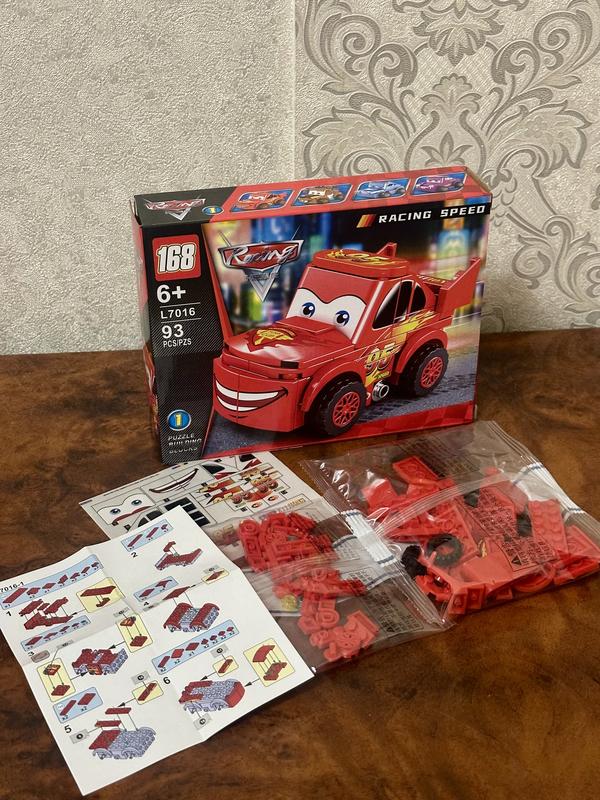 Конструктор Тачки Блискавка Маквін. В комплекті 93 деталі, інструкція та наліпки. Розмір упаковки 19-14,5-4 см