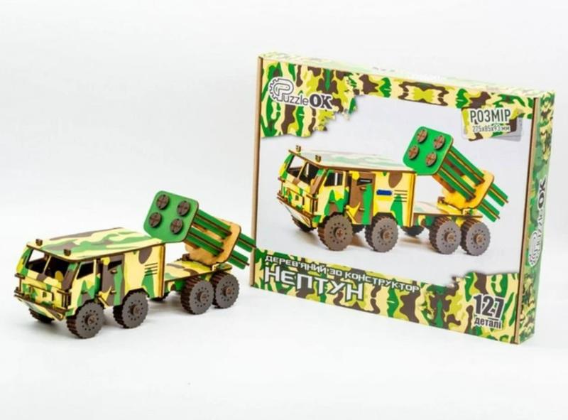 - Конструктор "Нептун" має унікальний дизайн, який вам сподобається. З гордістю демонструйте зібрану вами модель військової машини на будь-якій виставці. Поділіться любов'ю та пристрастю до військових та армійських речей із друзями та родиною. Ідеально підходить для дітей і дорослих, які цікавляться наукою, армією та бойовими броньованими машинами. Цей навчальний 3D-пазл "Нептун" допоможе дітям і підліткам дізнатись більше про військову техніку у веселій та розважальній формі, водночас стимулюючи їхні навички. - Конструктор для творчості "Нептун" - це об'ємна модель військового транспортного засобу ракетної системи залпового вогню для дорослих і дітей, які полюбляють використовувати свій мозок і створювати щось власними руками. Любителям головоломок будь-якого віку та статі сподобається будувати цей дивовижний конструктор із 127 деталей. - Розмір дерев'яного конструктора в зібраному стані: 275х85х93мм. - ВИСОКОЯКІСНИЙ ДЕРЕВ'ЯНИЙ 3D КОНСТРУКТОР - Виготовлений із високоякісного ХДФ. Всі деталі головоломки обережно вирізані та ретельно відшліфовані, щоб забезпечити гладкість країв. Прикрашений реалістичними деталями. - Киньте виклик собі та своїм близьким, щоб побудувати цю 3-D головоломку "зроби сам". Продемонструйте своє досягнення як витвір мистецтва або пограйте з новою іграшкою. 3D-конструктор допомагає розвивати такі навички, як координація зору, розв'язання проблем і розпізнавання форм.