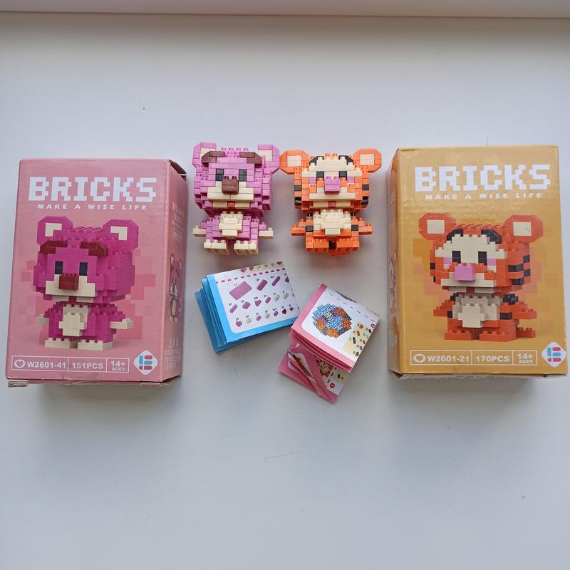 Ціна за два набори Конструктор фигурка Пиксели BRICKS Тигруля Tigger Winnie The Pooh, Micro Diamonds Blocks Bricks. Конструктор Тигра с м/ф Winnie the Pooh, 170 деталей Конструктор Bricks медведь Лотсо с м/ф История игрушек (151 деталей). Micro Diamonds Blocks Конструктор Брикс