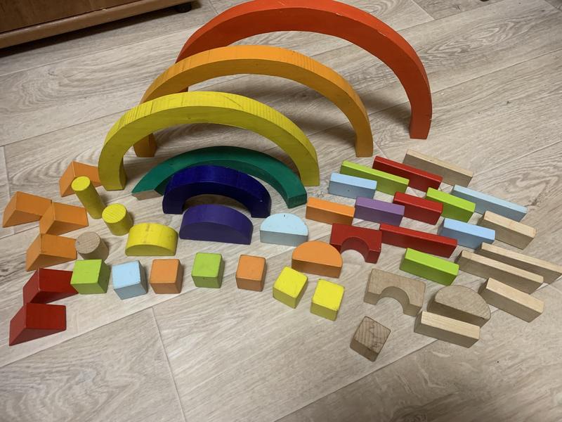 Дерев’яний конструктор Б/в, гарний стан Кількість деталей на фото, у веселки не вистачає блакитного кольору Головною перевагою дерев'яного конструктора є його екологічність, гіпоалергенність, безпека! У сучасному світі, де діти піддаються дедалі більшому впливу технологій і цифрових пристроїв, дерев'яні іграшки залишаються одним із найкорисніших інструментів для розвитку дітей. Гра з дерев'яними іграшками стимулює дитячу уяву, сприяє розвитку моторики та логічного мислення, а також сприяє розвитку соціальних навичок. Розвиток моторики та координації рухів: Збирання та гра з дерев'яними конструкторами Веселка вимагає від дітей уміння керувати дрібними рухами рук. Це сприяє розвитку моторики та координації рухів, що особливо важливо для малюків. Стимуляція креативності: Дерев'яні іграшки надають дітям можливість створювати щось своїми руками. У процесі гри вони можуть будувати різні структури, фігури і навіть вигадувати свої історії. Це розвиває їхнє креативне мислення і здатність бачити можливості в нестандартних рішеннях. Розвиток логічного мислення: Складання дерев'яних іграшок вимагає від дітей планування та послідовності дій. Вони повинні міркувати над тим, які частини потрібно використовувати і в якому порядку, щоб створити конструкцію. Це сприяє розвитку логічного мислення та вміння розв'язувати задачі. Посилення освітніх навичок: Дерев'яні іграшки можуть використовуватися для вивчення форм, кольорів, принципу симетрії, лічби. Посилення концентрації та витримки: Складання дерев'яних іграшок може вимагати багато часу і терпіння. Діти вчаться зосереджуватися на завданні та працювати над ним до завершення. Ця навичка корисна в багатьох аспектах життя. Розвиток фізичної активності: Збирання великих дерев'яних елементів також сприяє фізичній активності у дітей. Вони піднімають, переносять і з'єднують частини конструкторів, що сприяє розвитку фізичної сили та витривалості. Гра з дерев'яними конструкторами надає дітям безліч переваг для їхнього фізичного, когнітивного та соціального розвитку. Характеристики: Матеріал: дерево; Тип: головоломка; Розмір: 25х12см.