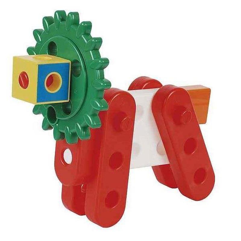 Цей набір об'єднав деталі конструкторів Юний інженер і Юний інженер – чарівні шестерні. В комплекті є панелі і балки, болти, гайки, колеса, півсфери, шестерні двох видів – маленькі з шістьма зубчиками і великі з вісімнадцятьма, а також пластмасові інструменти: молоток, викрутка. З них можна збирати моделі тварин, предметів, транспорту. Набір прекрасно підходить для першого знайомства з серією конструкторів Юний інженер.