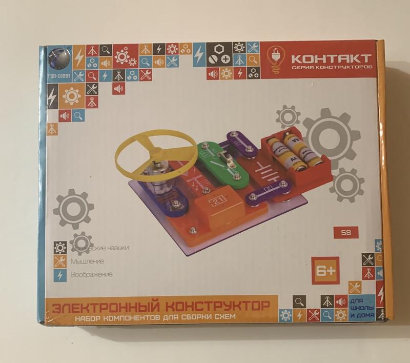 Электронный конструктор Контакт W-58 это набор компонентов для сборки схем. Конструктор поможет ребёнку заинтересоваться и лучше понять физику, разобраться в электронных схемах. Все элементы цепи, как и токоведущие элементы соединяются легко при помощи клипсы и разбор схем труда не представляет. В комплекте идёт прозрачная монтажная плата, она предназначена для размещения на ней компонентов. В комплекте: -параллельная цепь -вентилятор -проводник -лампочка -последовательная цепь -синтезатор. Возраст: 6+ Конструктор работает от 2-х батареек типа АА (нет в комплекте). Игрушка новая.