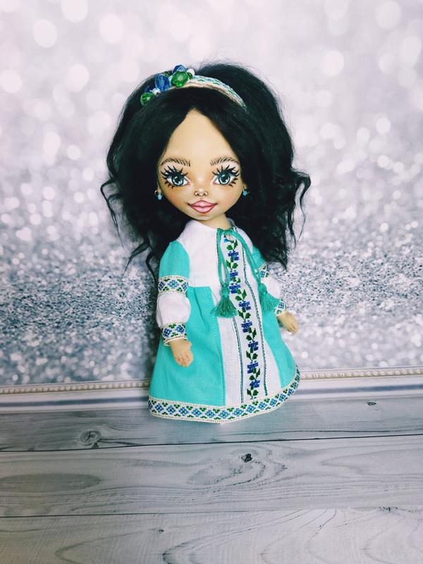 Лялечка 22 см ручної роботи, чудовий подарунок на будь-який вік. В подарунковій коробочці. Волосся натуральне, одяг, обруч зйомні. Є відеоогляд, запитуйте.