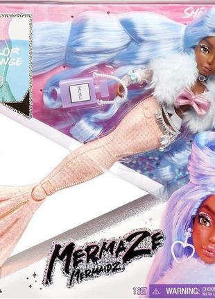 Mermaze Mermaidz Series 1-ляльки Русалки, перша серія. Абсолютно нова колекція ляльок від MGA Entertainment 2022 року. Нові ляльки-русалки виглядають надзвичайно. MGA (творці LOL Surprise, Rainbow High і Bratz) безсумнівно вміють робити найефектніших ляльок, від яких дух захоплює. І Mermaze Mermaid не виняток. Ляльки Mermaze Mermaidz - це 11-дюймові ляльки-русалки (можуть стояти, спираючись на хвіст; якщо хвіст розпрямити, то зростання ляльок більше, близько 34 см) з унікальними деталізованими скульптурними артикульованими і міняють колір хвостами. Характеристика: Хвіст Шеллнелле змінює колір з коралового на бірюзово-Блакитний, коли він стикається з холодною водою. Хвіст подвоюється як підставка. Її хвіст також служить підставкою, коли плавник зігнутий на 90 градусів, так що вона дійсно може стояти самостійно! Кожна лялька Mermaze Mermaid має точки зчленування на шиї, плечах, ліктях, зап'ястях, тулубі, талії і підходить для стількох поз! Кожна лялька-русалка Mermaze має унікальний Скульптурний хвіст, який при зануренні у воду чарівно змінює колір. У Шелнелль красиві, першокласні блакитні волосся, укладені великим бантом на маківці. Так само варто скасувати чудові очі зі скляними вставками і справжні вії, а також фантазійний макіяж в комплекті з блакитними складками і мерехтливими тінями. Mermaze Mermaidz Shellnelle одягнена в блискучий рожевий топ з бантом, синю куртку зі штучного хутра з мішурою, тканинний пояс з коміром і сітчасті манжети. Вона доповнює аксесуарами сережки у вигляді сердечок, кольє-чокер, пояс з підвісками MRMD і сумочку Shellnelle. Характеристики Лялька Mirmaze Mermaidz Shellnelle (Color Change) - Русалка Шинель з хвостом, що змінює колір Додаткові характеристики Хвост Русалки меняет цвет в воде Розміри упаковки 30 х 8 х 30 см