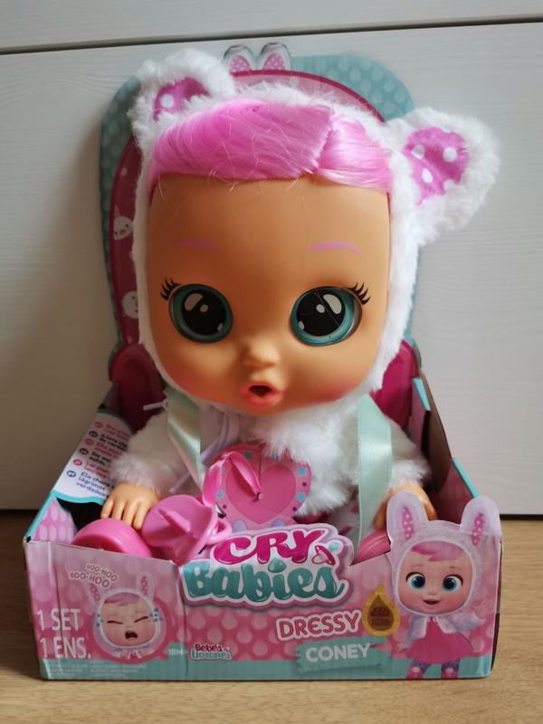 Нова серія Cry Babies з волоссям, які можна розчісувати! Особливістю лялечки є те, що вона вміє плакати як справжня дитина. Для цього на її спинці є спеціальний контейнер для води, щоб імітувати сльози, її можна заспокоїти давши їй пустушку, яка прикріплена до комбінезону. Лялька одягнена в ошатний костюм, який легко знімається. У неї великі блакитні очі і рухомі кінцівки. Вона зроблена з якісних не токсичних матеріалів. А ще вона вміє сміятися і агукати. Ваша дитина буде отримувати задоволення від рольової гри в маму, дбаючи про свою ляльку-доньці. Вона напевно стане улюбленою іграшкою, вона дуже мила, її так і хочеться обійняти. Звук дитячого плачу приємний і зовсім не дратує. Плач триває до 10 сек. Заспокоїти плаксу можна 3 способами: * дати соску; * покачати; * покласти спати. В комплекті - плюшевий костюм, який надітий на іграшку, його можна знімати. Нова серія Cry Babies з волоссям, які можна розчісувати!