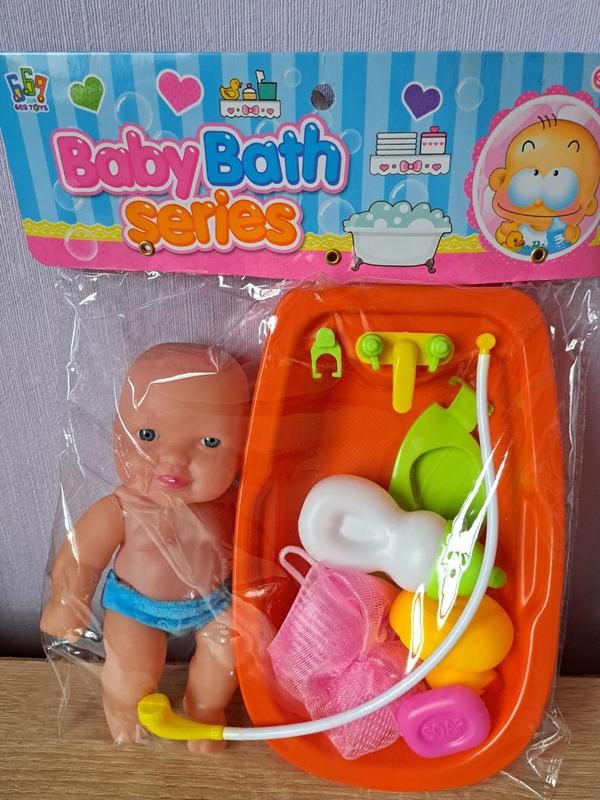пупс з ванночкою, мочалка, качечка пискавка, пляшечка розмір упаковки 25×30см