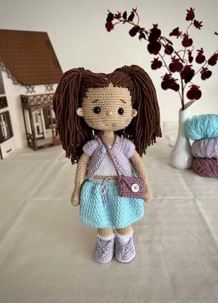Крихітка "Наталочка". Лялечка виконана з гіпоалергенної напівбавовняної ниточки. Наповнювач холофайбер. Ручки та ніжки рухомі. Оченята на безпечному для дітей кріпленні. Спідниця, болеро і балетки знімаються. У ляльки також є аксесуар - сумочка. Висота 25см. Відправляється у подарунковій коробці.