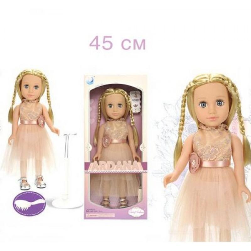 Красива лялька "Ardana" стане приємним подарунком. Висота іграшки 45 див. Одягнена в гарне плаття і туфельки, з довгим волоссям. Одягнена в красиву сукню, зроблену з якісних матеріалів. Іграшка на підставці. У наборі є аксесуари - сюрприз. Для дітей старше 3-х років.