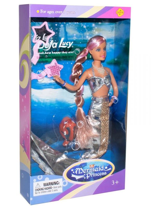 Лялька Defa Русалонька" (3 види) Русалочка стане улюбленою іграшкою Вашої малятку. У Русалки є один секрет: якщо ляльці намочити волосся, вони змінять колір, при висиханні колір повернеться до початкового. В набір входить: - лялька, - морський мешканець, - гребінець, - дзеркальце. Поставляється в коробці 18х33х6 див.