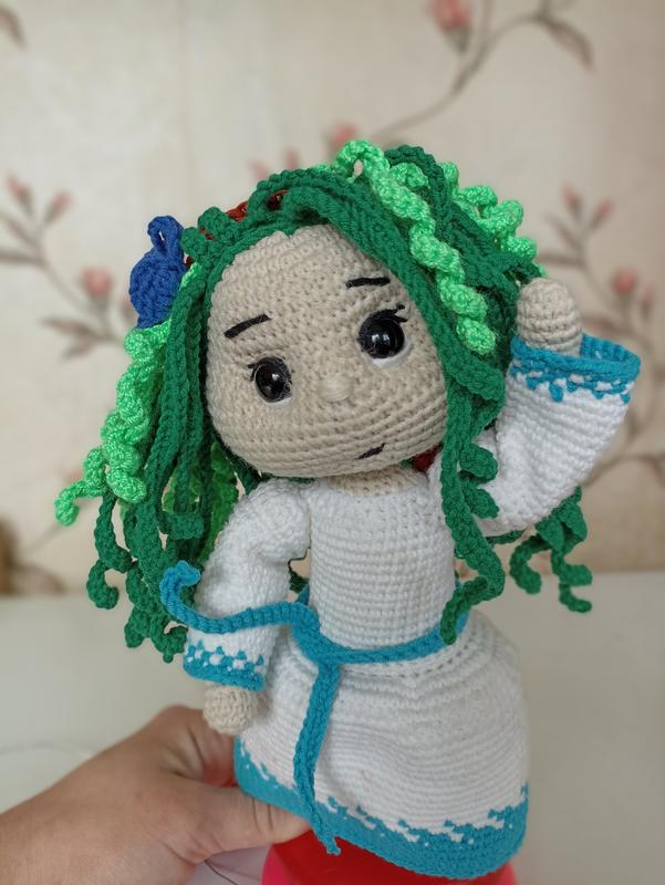 іграшка виконана в техніці амігурумі із натуральної бавовни повністю ручної роботи на каркасі,тобто може рухатися і приймати будь-яке положення