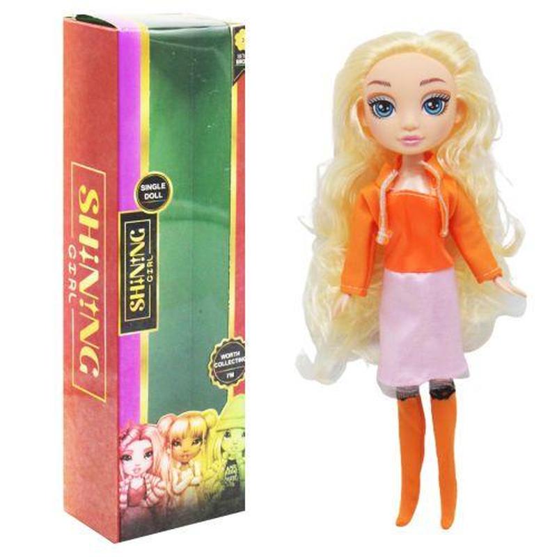 Яскрава лялька стане чудовим подарунком дитині. Висота іграшки 24 см. Одягнена в гарний модний костюм. У іграшки яскраве довге волосся. У ляльки рухомі ноги та руки. Виготовлена з якісних матеріалів. Для дітей від 3 років.